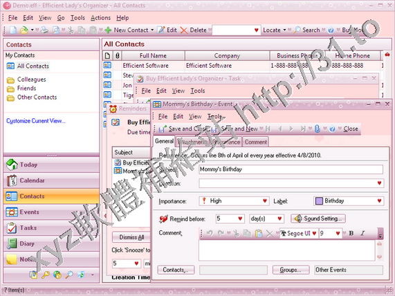 Efficient Ladys Organizer v3.50.334 英文正式版(個人資訊管理系統軟體)