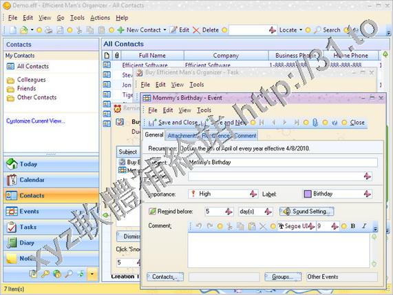 Efficient Software Efficient Mans Organizer v3.60.352 英文正式版(個人資訊管理系統軟體)