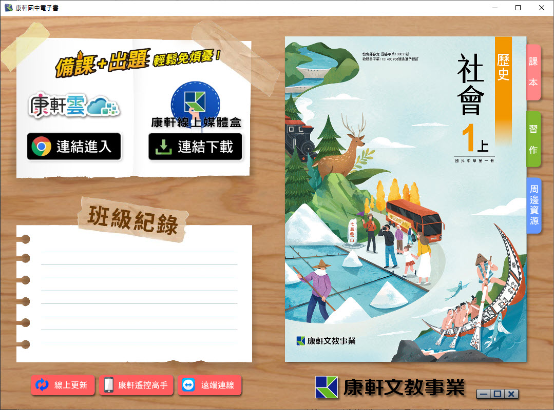 112學年上學期 國中 康軒版 歷史電子書 1年級(含課本、習作含解答、教學資源)教學光碟
