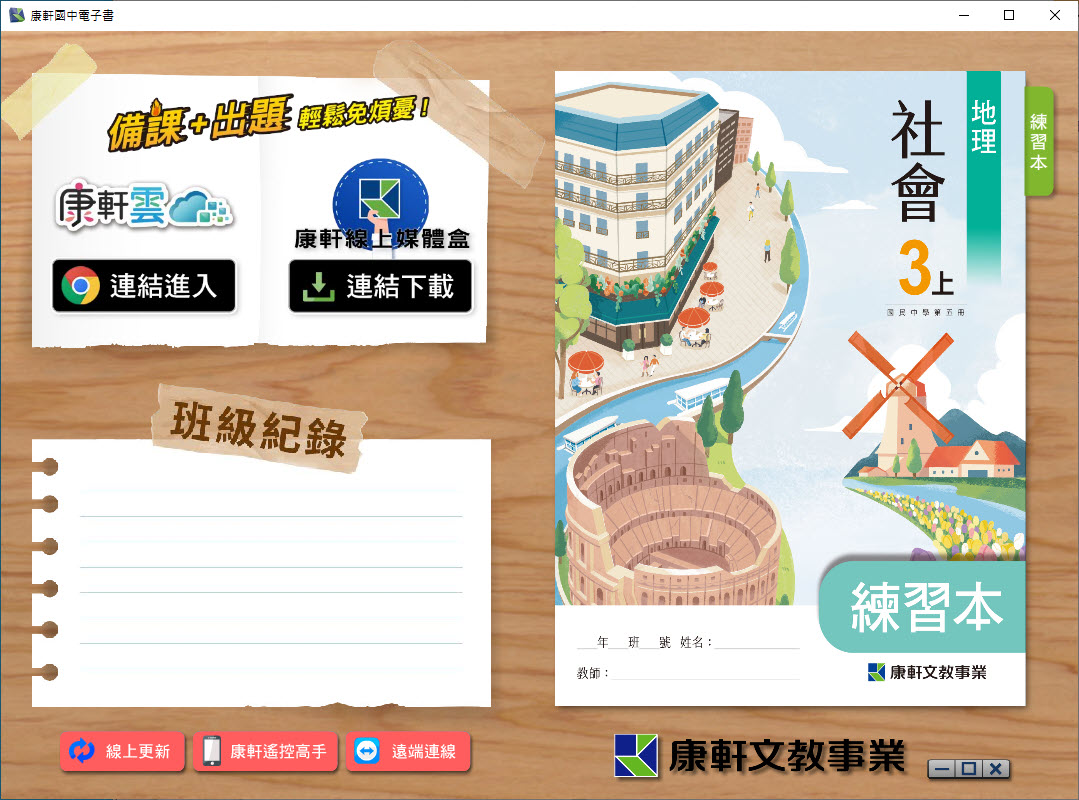 112學年上學期 國中 康軒版 地理 練習本電子書 3年級 教學光碟