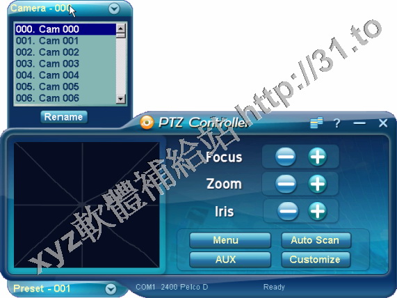 PTZ Controller是一款PTZ(Pan/Tilt/Zoom)攝像機控制軟體。它可以通過RS232介面直