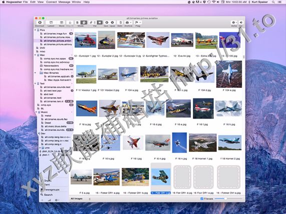 Hogwasher is a full-featured newsreader for OS X. File downloads