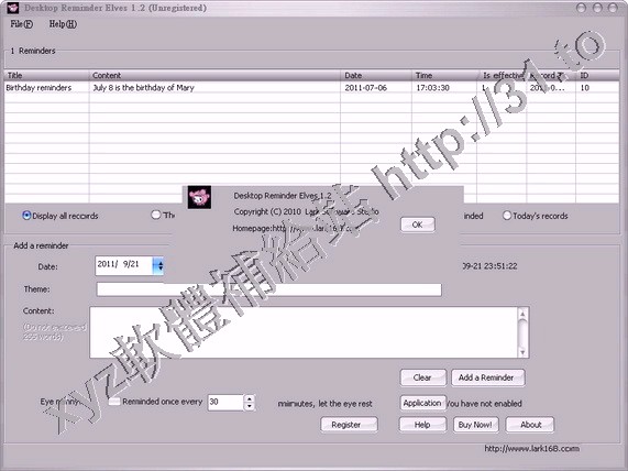 • Lark Desktop Reminder Elves v1.2 英文正式版(桌面提醒軟體)