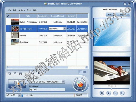 • ImTOO AVI to DVD Converter v3.0.31.0824 英文正式版(視頻文件格式轉換軟體)